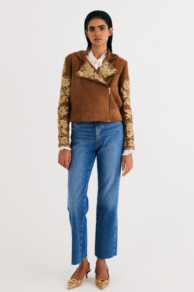 Rani Embroidered Bomber Jacket In Handloom Herringbone Cotton