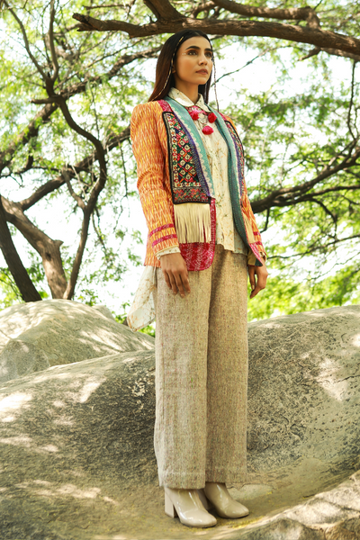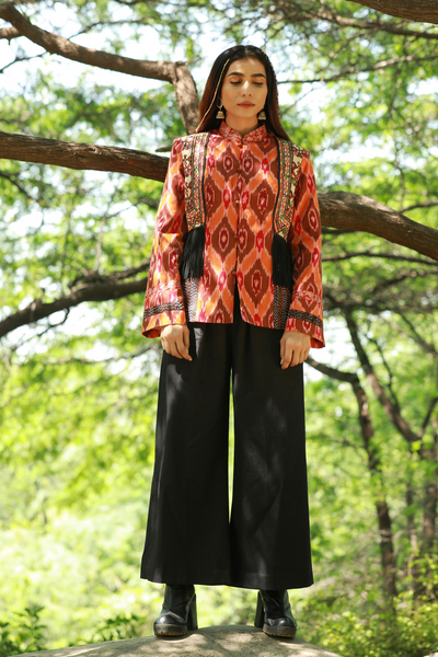 Tabriz Yellow Fringe Jacket In Organic Cotton Silk