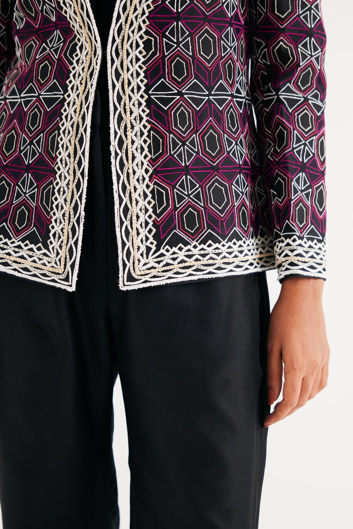 Black and Pink Mughal Jaal Jacket